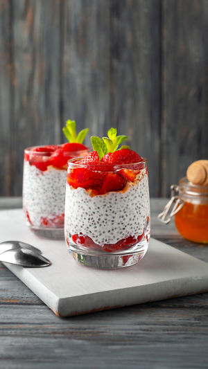 Чиа впитывают клубничный сок и превращают ягодное пюре в нежную, слегка желеобразную массу, напоминающую домашний джем. Этот десерт богат клетчаткой, растительным белком и омега-3, прекрасно насыщает и заряжает энергией.