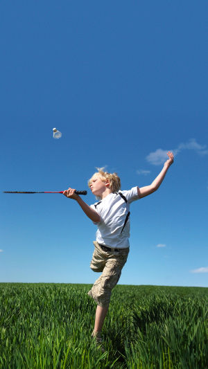 <b>Дальний удар справа и слева.</b> Это высокие удары, отправляющие волан к задней линии соперника. Сосредоточьтесь на плавном движении кисти, а не на силе.