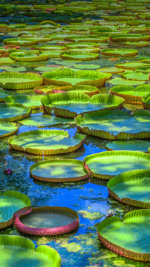Кувшинка «Маврикий» значительно отличается от привычных водных растений. Её листья способны вырастать более чем до 2 метров в диаметре, а цветы раскрываются утром, демонстрируя белые или розовые лепестки, которые держатся несколько дней.