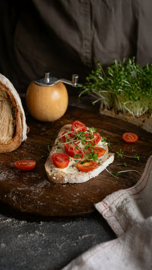 В основе брускетты — баланс и свежесть. В отличие от сложных рецептов, здесь всё держится на качестве ингредиентов. Спелые томаты дают сочность и лёгкую сладость, базилик добавляет аромат, а чеснок придаёт насыщенность. Оливковое масло объединяет вкусы и делает текстуру более мягкой и гармоничной.