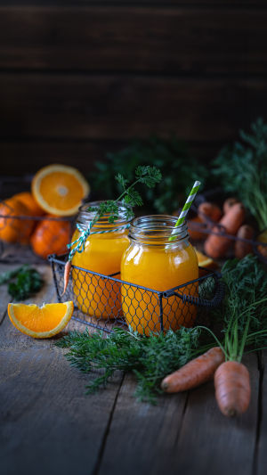 Морковно-апельсиновый напиток с имбирём — это сочетание чистоты, яркости и мягкой энергии. Натуральная сладость моркови, солнечная свежесть апельсина и лёгкое тепло имбиря создают напиток, который одновременно охлаждает и дарит ощущение уюта.