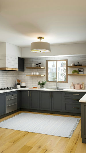 Кухня ежедневно подвергается нагрузке. Столешницы царапаются, полы загрязняются, фасады быстро пачкаются. Выбирайте материалы, которые сохраняют внешний вид со временем. Матовые поверхности менее заметно пачкаются. Столешницы из кварца или композитных материалов устойчивы к повреждениям. Деревянные полы выглядят красиво, но лучше выбирать обработанные или инженерные варианты, устойчивые к влаге.
