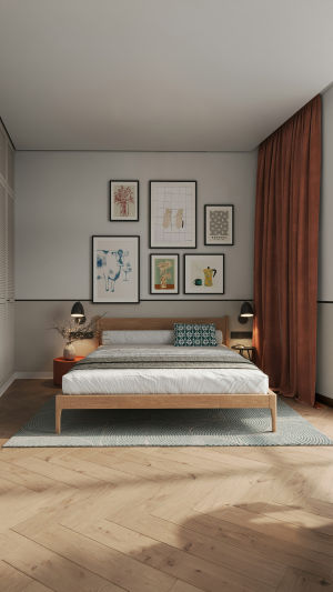 Завершением стала галерея на стене с мотивами путешествий. Любовь к Парижу и Англии вдохновила меня на выбор работ. Над кроватью разместилась репродукция «Вид с площади», перекликающаяся с зелёными оттенками комнаты и создающая атмосферу европейского сада.