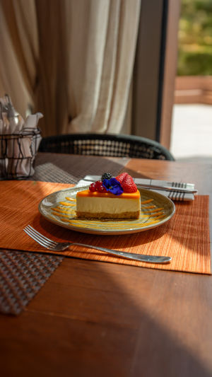 После полного застывания аккуратно извлеките чизкейк из формы и нарежьте на порции. Каждый кусочек сочетает хрустящую основу, нежный мусс и освежающий вкус манго.