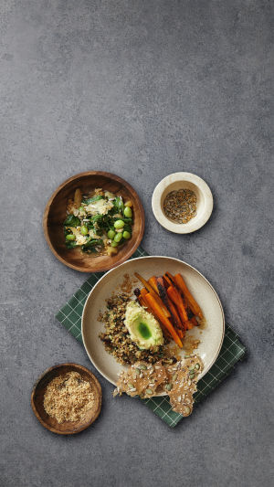 Добавьте больше белка: используйте тофу, эдамаме или запечённые орехи, меняйте злаки: попробуйте перловку, полбу или булгур для разнообразия текстуры, добавьте зелень: мята, базилик или кинза придадут свежесть, используйте специи: копчёная паприка или чесночный порошок усилят вкус.